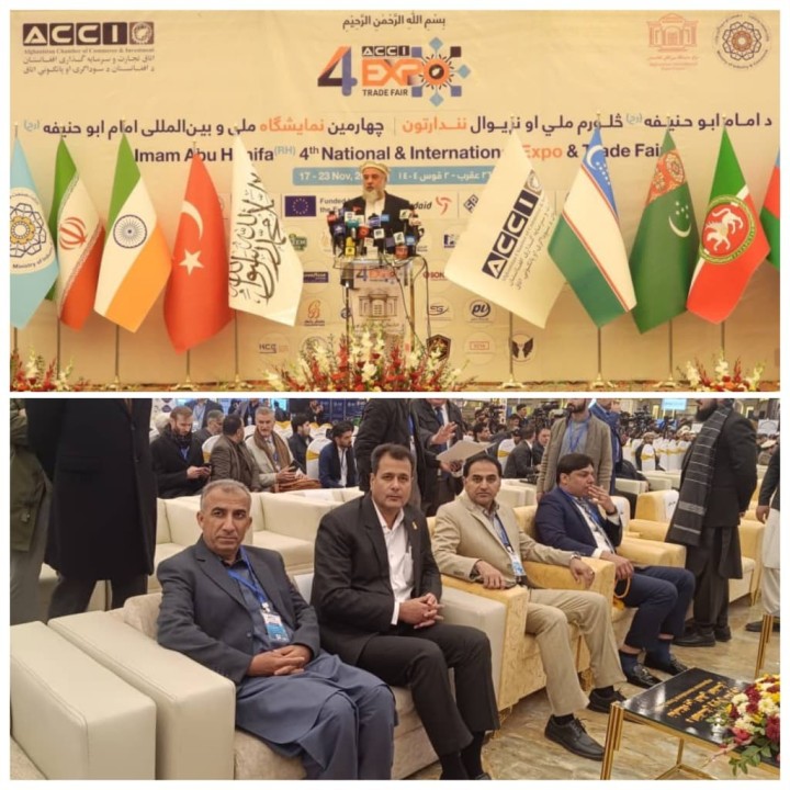 او افزود که افغانستان در نظر دارد در آینده از بندر چابهار به عنوان بزرگترین مسیر تجاری برای دست‌یابی به بازارهای جهانی استفاده کند. مراسم افتتاحیه چهارمین نمایشگاه بین‌المللی ابوحنیفه، با حضور مقامات بلندپایه حکومتی، سفرا و نمایندگان کشورهای منطقه و جهان و نیز نمایندگان نهادهای بین‌المللی، امروز دوشنبه، 26 آبان 1404، از سوی اتاق تجارت و سرمایه‌گذاری افغانستان در مرکز نمایشگاه‌های بین‌المللی کابل برگزار شد.