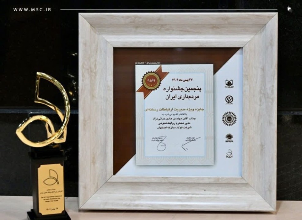 مدیریت ارتباطات فولاد مبارکه موفق به کسب تندیس و جایزه ویژه در بخش «مدیریت روابط رسانه‌ای» شد