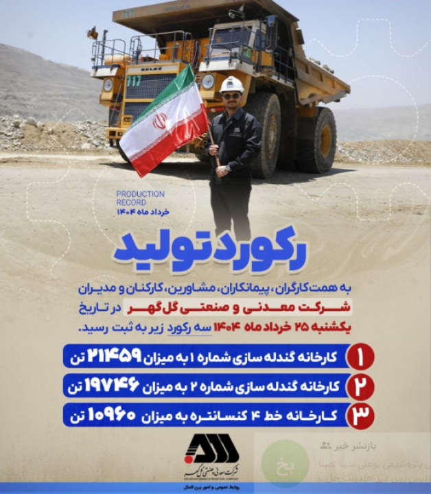 شرکت معدنی و صنعتی گل‌گهر با اتکا به توان داخلی و تلاش شبانه‌روزی کارکنان خود، در تاریخ ۲۵ خرداد ۱۴۰۴ موفق به ثبت سه رکورد جدید تولید در خطوط مختلف گندله‌سازی و کنسانتره شد.