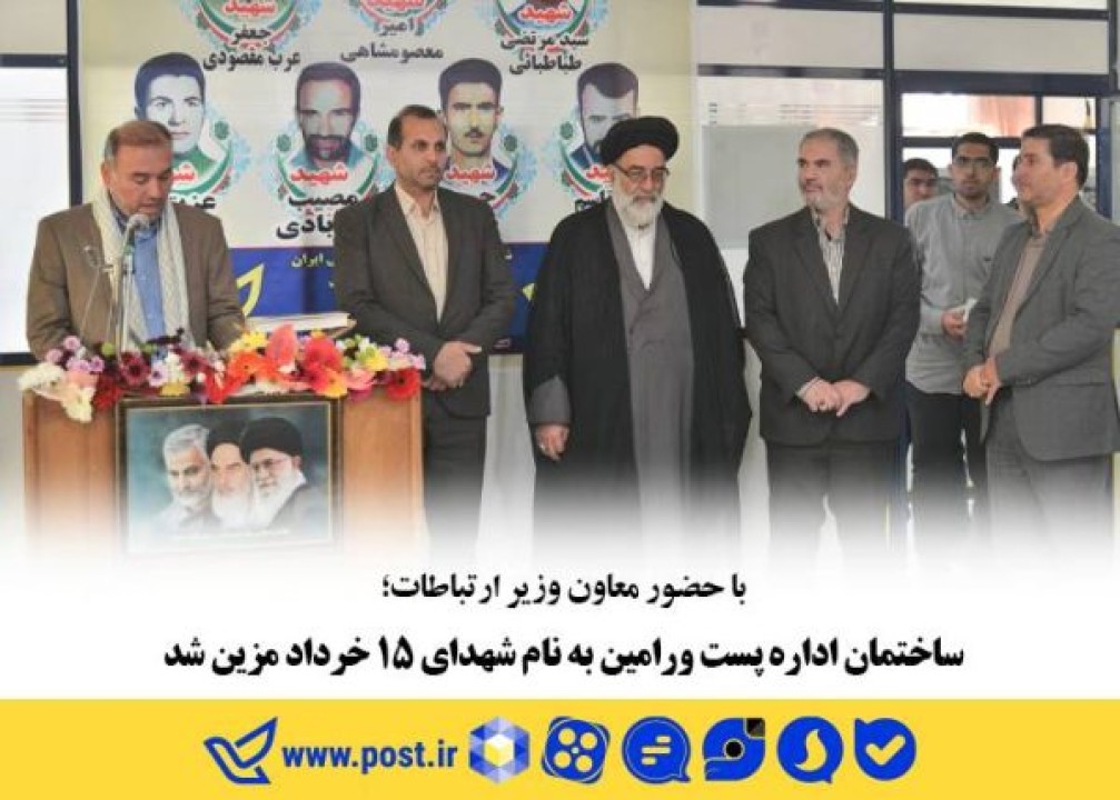 طی مراسمی روز پنج شنبه 06 مهر 1402، همزمان با آخرین روز از هفته بزرگداشت دفاع مقدس تابلوی ساختمان اداره پست شهرستان ورامین با حضور محمودلیائی؛ معاون وزیر ارتباطات و مدیرعامل شرکت ملی پست به نام شهدای 15 خرداد ورامین نامگذاری شد.