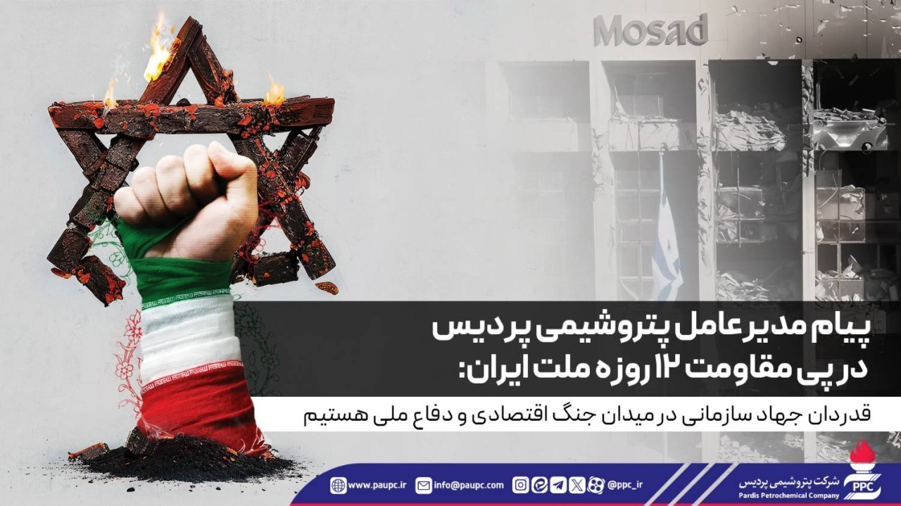 در پی تجاوز ۱۲ روزه رژیم صهیونیستی و مقاومت همهجانبه ملت ایران، مدیرعامل شرکت پتروشیمی پردیس با صدور پیامی، ضمن تسلیت به خانواده شهدای این نبرد، از همبستگی و مجاهدت شبانهروزی کارکنان در حفظ تولید و تداوم خدمترسانی در شرایط جنگی قدردانی کرد. مهندس عبدالرحیم قنبریان همچنین با اشاره به هدایتهای رهبر معظم انقلاب، این پیروزی را مرهون وحدت ملی و ایستادگی هوشمندانه دانست.